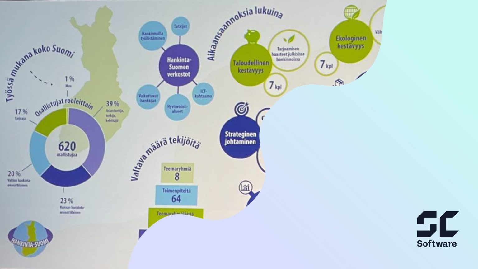 Terveiset Hankinta-Suomi-syysseminaari 2023:sta! Seminaarin puheenvuoroissa käsiteltiin monipuolisesti Suomen julkisten hankintojen tilannetta aina vastuullisuuden teemoista Hankinta-Suomi